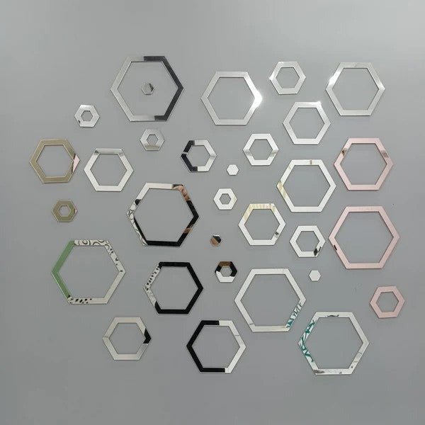 Crafted from high-quality mirror acrylic, each hexagon reflects natural and ambient light beautifully, making rooms appear brighter and more spacious. The mix of sizes and finishes allows you to create a custom layout that perfectly matches your wall and interior style.